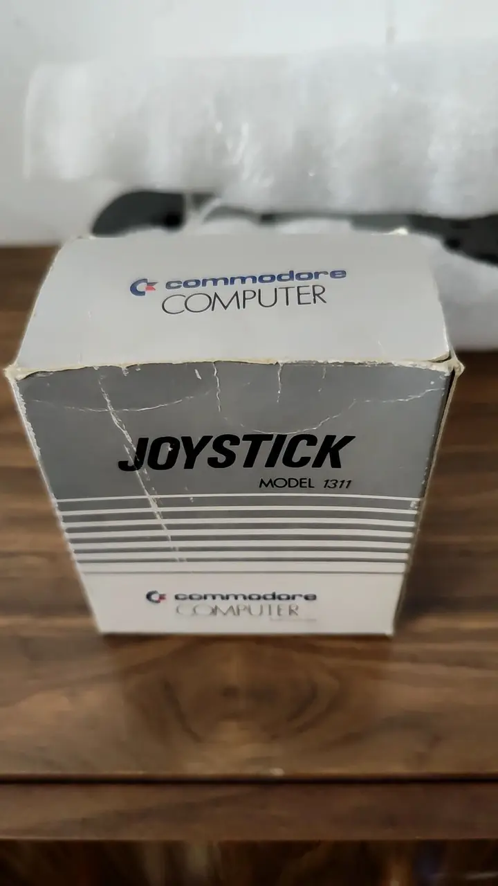 Here is a genuine Commodore Model 1311 joystick, the iconic controller produced by Commodore Business Machines for use with the Commodore 64 and compatible home computers of the early 1980s. The 1311 is a classic 9-pin D-sub (DE-9) joystick that defined a generation of gaming and is a staple of any serious retro computing collection. This listing is a rare opportunity to acquire a fully disassembled unit complete with its original Commodore-branded box — making it equally valuable as a restoration project, spare-parts donor, or display piece.