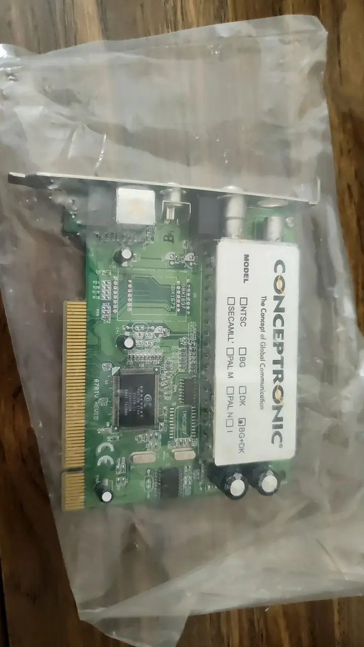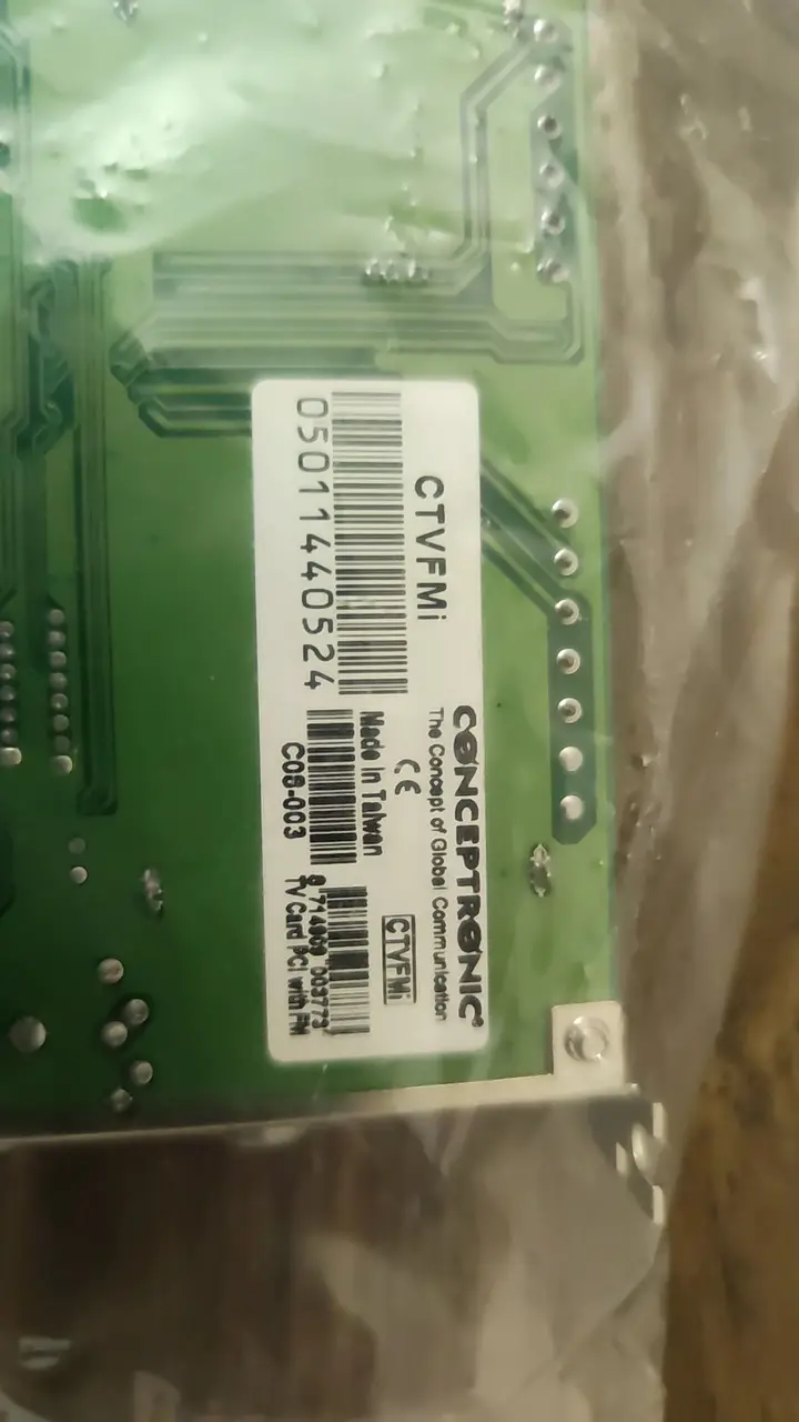 The Conceptronic CTVFMI is a versatile PCI internal capture card designed to bring analog TV tuning, FM radio reception, and composite/S-Video capture to your desktop PC. Whether you want to record VHS tapes, watch free-to-air analog broadcasts, or listen to FM radio through your computer, this card covers all the bases at an affordable price point. This unit is in Good condition — fully functional and ready to install, with only light cosmetic signs of normal use.
