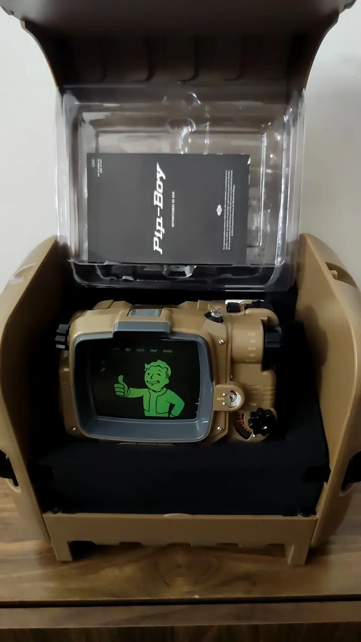 This Pip-Boy replica is in Like New condition — it has been used only once or twice and shows absolutely no signs of wear, scratches, discoloration, or damage. The finish is pristine, all detailing remains crisp and intact, and it presents exactly as it would from a collector’s shelf. You would be hard-pressed to distinguish it from a brand-new unit.