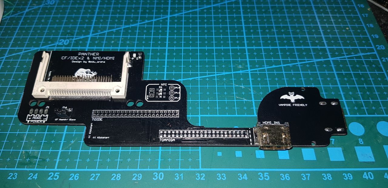 This is an adapter for Amiga 600/1200 that allow use both, cf or ide port and also provide hdmi passthrough via the RF module (no dremmel required on that part (RF), but my version with usb port included was used on that A600). This adapter also includes a NMI circuit.