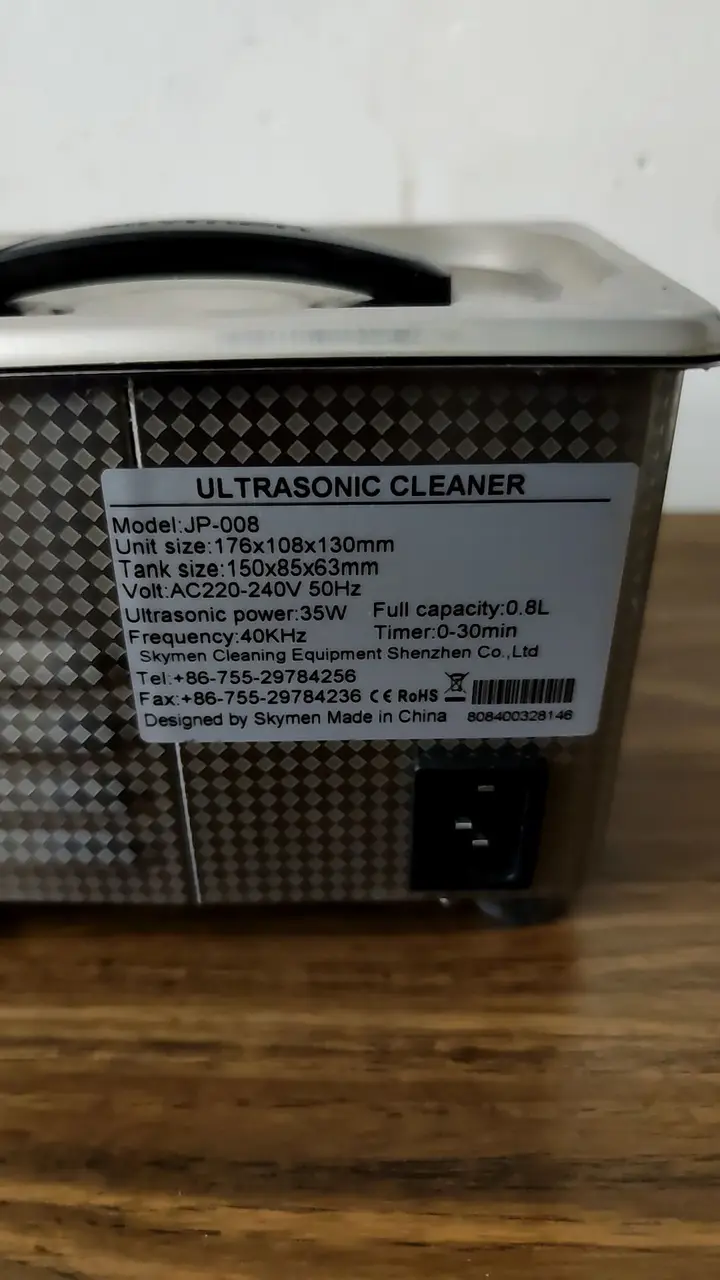 Get professional-grade cleaning power at a second-hand price. The Skymen JP-008 Ultrasonic Cleaner uses high-frequency 40kHz ultrasonic waves to blast away dirt, grease, and grime from delicate items without damaging them. Perfect for home users and small businesses alike, this unit handles everything from jewelry and eyeglasses to watch parts, coins, dental appliances, and electronic components. This unit has been used only once or twice and shows absolutely no signs of wear — it’s as close to brand new as you’ll find on the second-hand market.